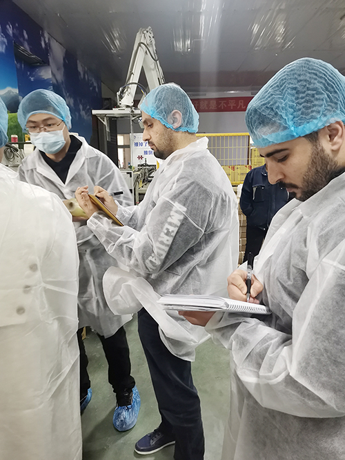 استقبل ممثل الشركة الضيوف بحرارة من بعيد.برفقة القادة الرئيسيين والموظفين في كل قسم، قام العميل بزيارة ورشة الإنتاج، ورشة القطع، وورشة التعبئة والتغليف لمصنع فيلم لصق PVC.أثناء الزيارة، قدم الموظفون المرافقون لشركتنا مقدمة تفصيلية عن منتجات أفلام PVC وقدموا إجابات احترافية على أسئلة العميل.